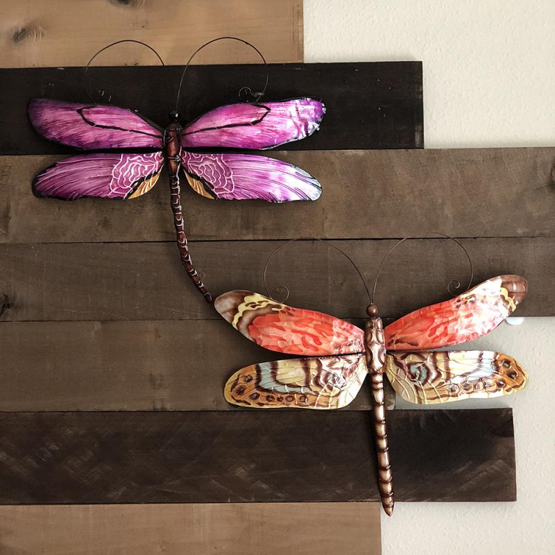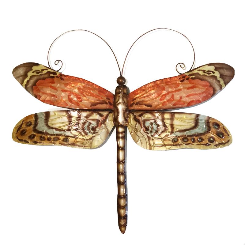 This festively colored dragonfly will brighten any room with its mix of colors hand-painted in intricately detailed patterns. A mix of metal and capiz shell will highlight texture and the capiz will give it a translucent feel as it reflects and bounces the colors.